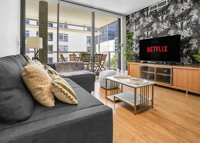 This apartment is within reach of the Darling Harbour and the heritage-listed swing Pyrmont Bridge is a 7-minute walk away. Nestled in the centre of Sydney, Central Location Nsw 3 Bedroom Apartment With Balcony is situated within a 300-metre distance of the King Street Wharf entertainment district. This 95 m² apartment is also 20 minutes on foot from Circular Quay.